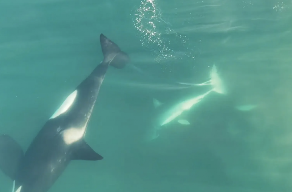 The small drone footage is a sneak peek into Thursday night’s episode of Shark House. This video is incredible, as we get to witness a pack of killer whales killing a great white. In the clip, the drone zooms into the orca whales as they swim. Between two whales another one emerges from the water, bring with it a shark. It then proceeds to bite the shark and drag it back into the water. Another whale follows it and takes the shark next. As the drone zooms out, we are left staring off into the bottom right of the screen, at the murky, disturbed water.Â